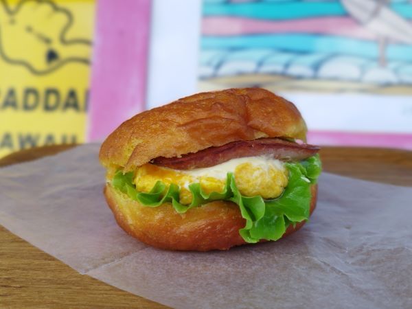 「スパムサンド」(500円)は、ハワイのソウルフードであるランチョンミート“スパム”と卵、レタスがはさんであり、食事にできそうな食べ応えのある一品。惣菜系のマラサダはハワイにはなかったので初めての挑戦。こちらもドーナツの軽さが際立ち、重くない味わいです。