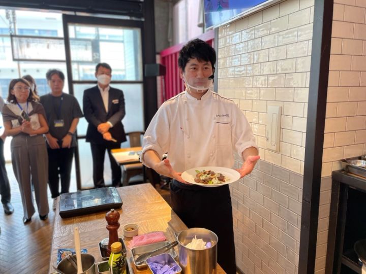 ササっと手際よく、かつ説明もわかりやすく考案レシピを再現する水野シェフ