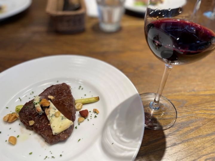 九州産黒毛和牛のステーキには、フランス・ボルドーのしっかりした赤を。