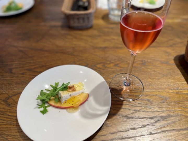 カマンベールチーズとりんごのアぺリティフにはフレッシュで甘酸っぱいシードル がさっぱり。
