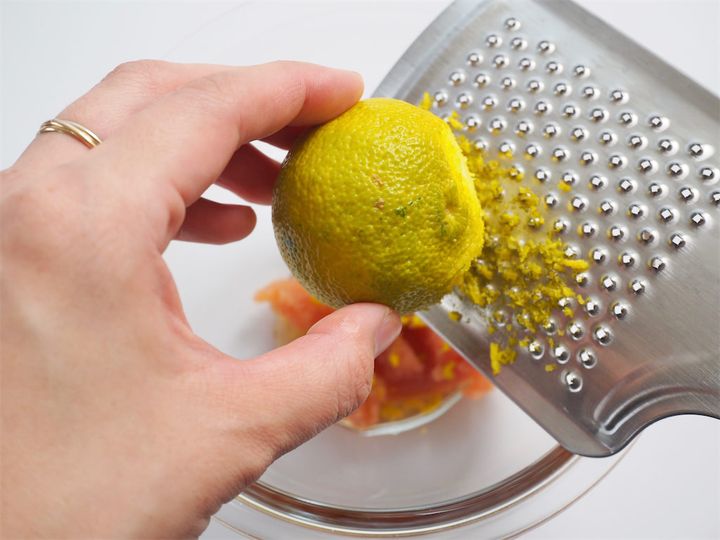 ゆずの皮はたっぷりがおすすめ!明太子がつぶれないよう、やさしくしっかり混ぜ合わせましょう。