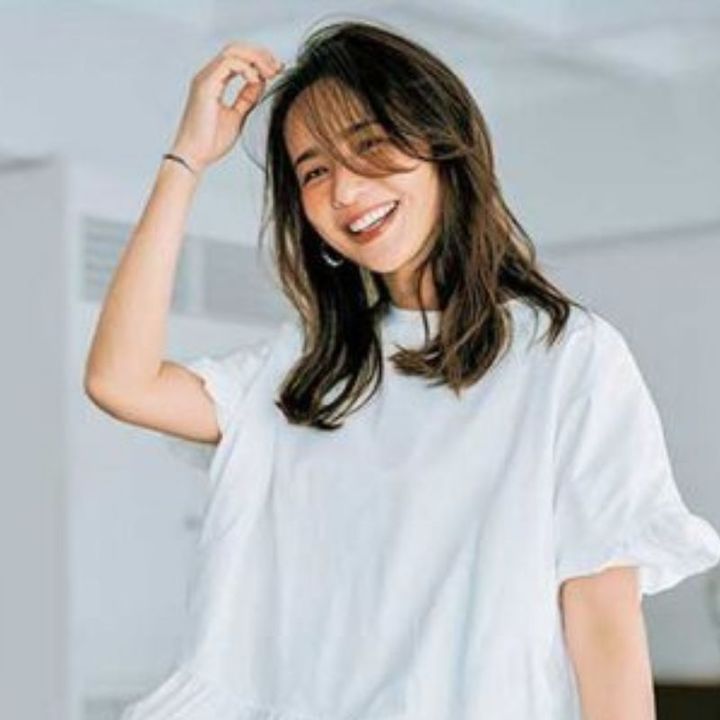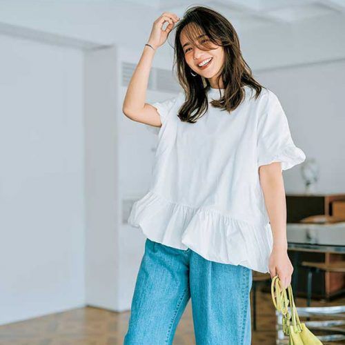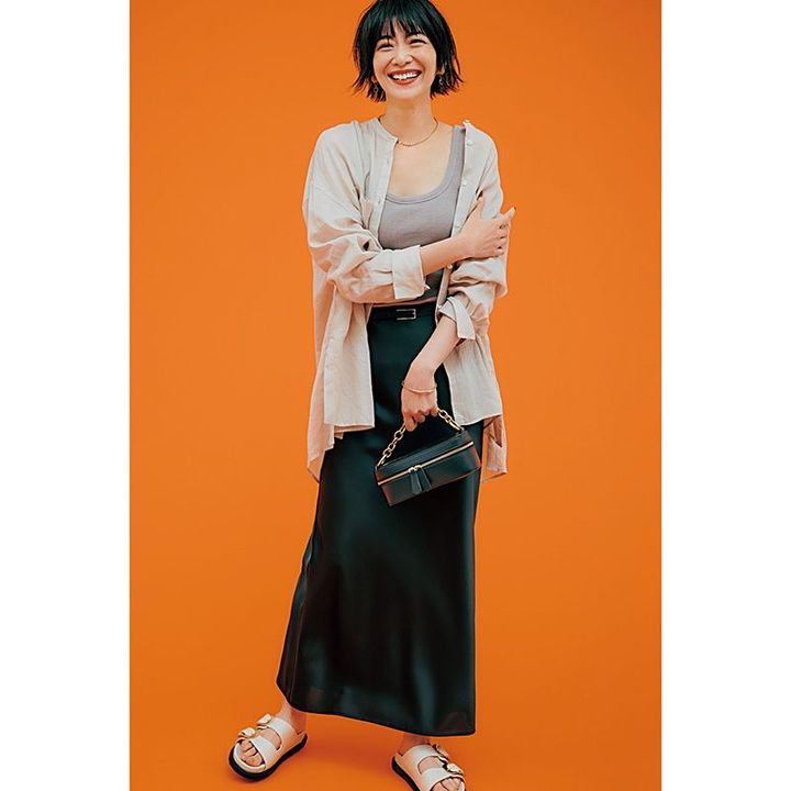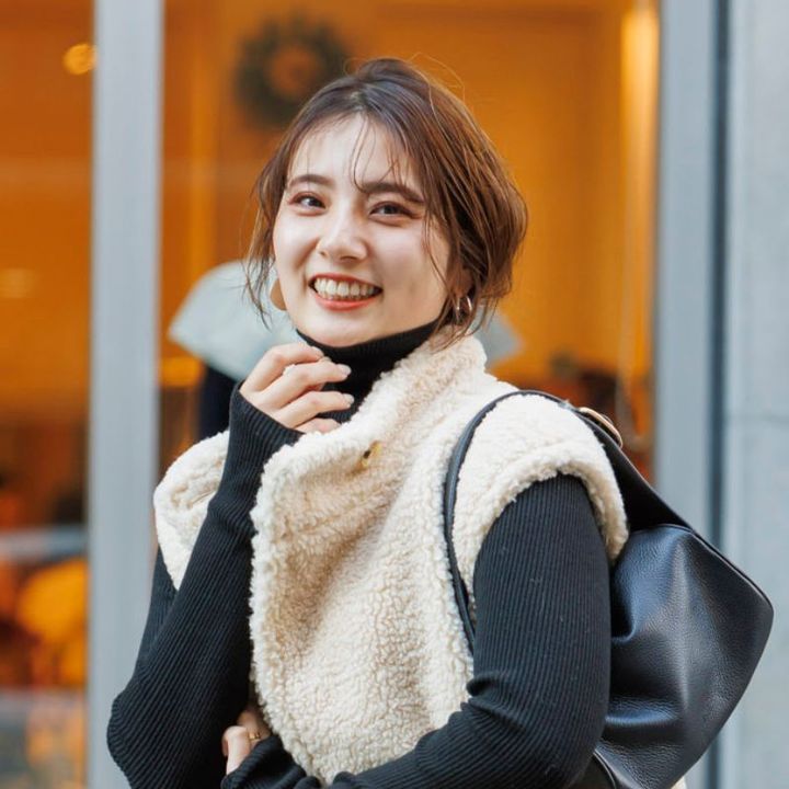 ちょっとしたことでオシャレに見えたり野暮ったく見えたりするため、難しいイメージのあるシンプルコーデ。無難になりがちなセミロング・ロングヘア×シンプルコーデの組み合わせが、ショートバングにするだけでこなれた雰囲気に。髪色は暗めカラーにすれば、子どもっぽくなる心配もありません。(大和美帆さん)