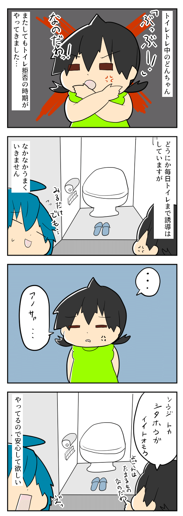 難なくトイレに行ける時期と、なにがなんでもトイレを拒否する時期が交互に来ているようで