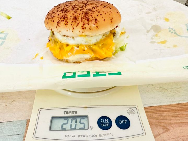 筆者が購入した『マクドナルド』の「チーズロコモコ」は包み紙を含めて1個205gで、公式カロリーは559kcal。パックの重さを除いた『コメダ珈琲店』の「ロコモコバーガー」はずっしり313gで、公式カロリーは710kcalでした。