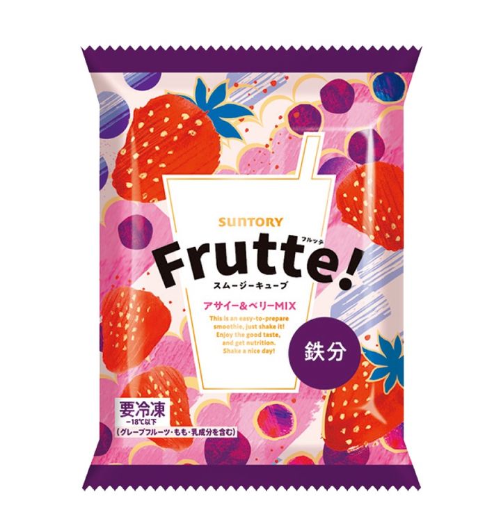 牛乳と混ぜて振るだけの冷凍スムージーキューブ。食物繊維やビタミンのほか、乳酸菌も補える。フルッテアサイー&ベリーMIX 100g ¥734(サントリー食品 TEL:0120・139・320)
