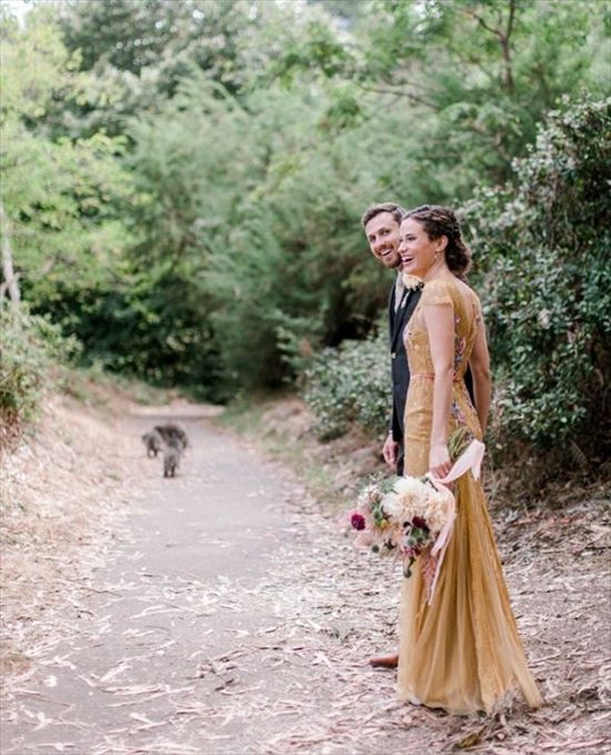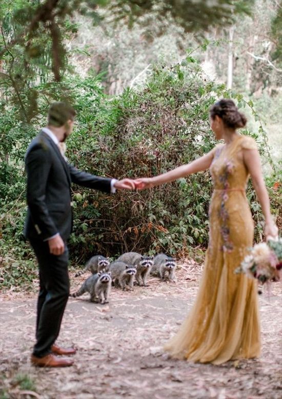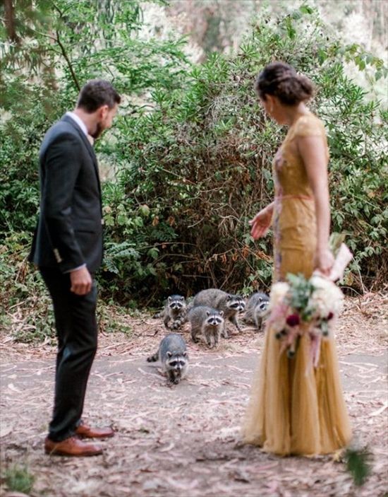 3. ウェディングフォト撮影中にかわいいハプニング!アライグマの家族が結婚式に参列して祝福に駆け付けてくれました