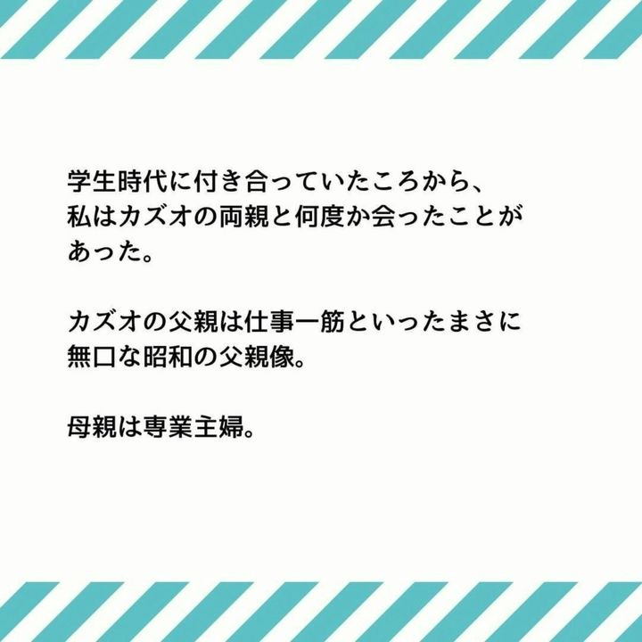 カズオの父親は、無口。母親はおしゃれ好きな女性だったと言います。この母親がヒロミさんの人生を大きく左右するような要注意人物だったなんて、このときは知る由もなかったのでした…。