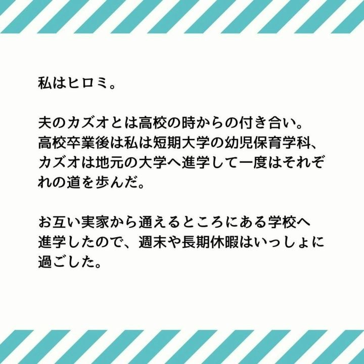 ヒロミさんは、夫のカズオと高校時代に知り合い交際を重ねていました。めでたく結婚をして、幸せを感じながら暮らしていました。