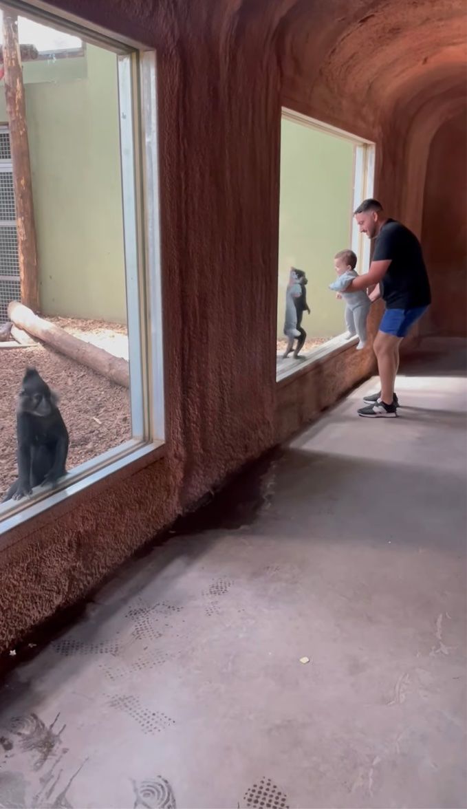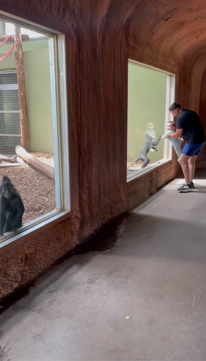 フランスの動物園で撮影された今回の動画には、サルの展示室でのワンシーンが収められています。