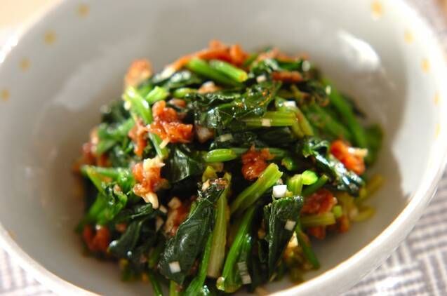 ナムルの中でも人気が高いのが小松菜で作るナムルです。鶏がらスープの素を加えるとコクと旨みがプラスされます。シャキシャキした食感で食べやすく、やみつきになりますよ。