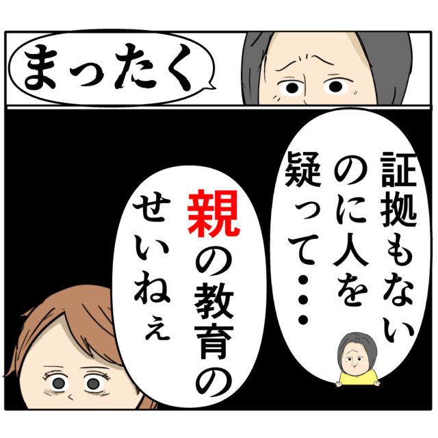 「まったく・・証拠もないのに人を疑って・・・『親』の教育のせいねぇ」とやば美さんは全く関係ない両親のことまでけなしはじめました。
