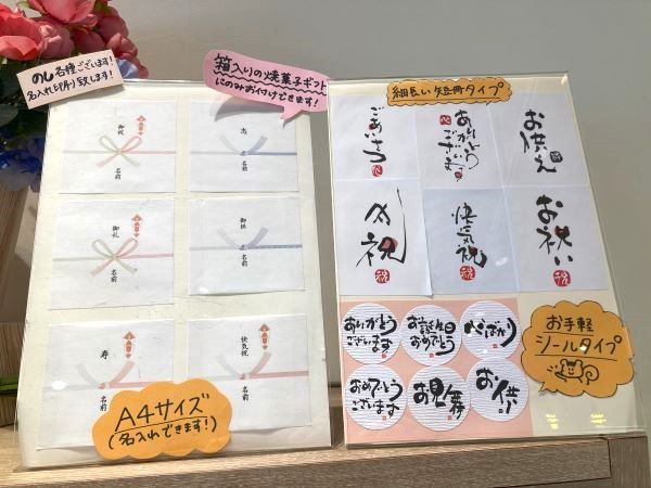 各種電子決済に対応されていますので現金レスでお買い物ができます。贈答品用の熨斗やキャンドルも種類豊富に用意されています。日常使いから手土産等のギフトや、かしこまった場にお持ちする菓子折りまで幅広いニーズに対応されているお店です。三鷹にお越しの際は是非、足を運んでみて下さいね!