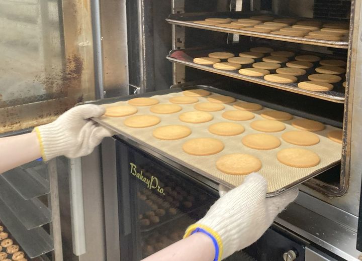 一歩厨房に入らせていただくと、ピカピカしたステンレスの業務機材に圧倒されます。焼きあがりの熱気とバターのいい香り。そして、てきぱき作業されているパティシエさんによって丁寧に手際鮮やかにどんどんスイーツが仕上がっていきます!