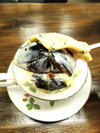 極深に炭火焙煎した混ぜ物なしの純粋なこだわり珈琲ゼリーもぜひ味わってほしい一品♪ 極細に挽いたブラジル豆が散らされ、程よい苦みとバニラアイスの甘みがとてもマッチしています。 茜屋さんでは「ドリンクオーダー」は基本的に必須ですが、オーナーの意向で「珈琲ゼリーはスイーツだけど珈琲だから」ということで(笑)、単品でもOK♪これだけを召し上がりに来るファンも多数!私もハマりました♪