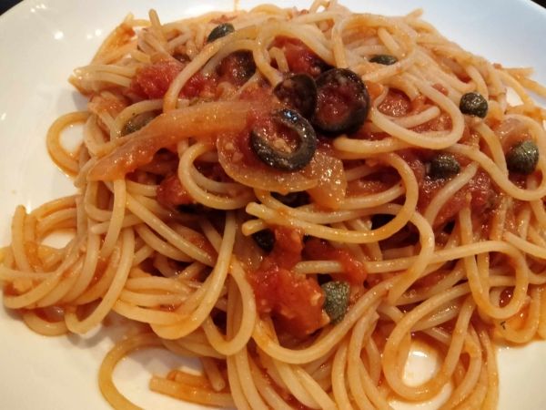 ナポリの名物パスタ「プッタネスカ(900円)」です。ディナータイムで人気のパスタソースが、ランチタイムにも味わえるのが嬉しいですね。トマトソースの酸味をオリーブとケッパーの苦味が引き立ててくれます。トマトソース好きには是非とも味わっていただきたい1品です。