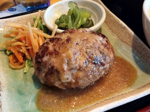 こちらは「和風ハンバーグ定食(1000円)」です。ふっくらとしたハンバーグにソースを絡めると、ご飯がすすみます。付け合わせのきんぴらも美味しかったですよ!