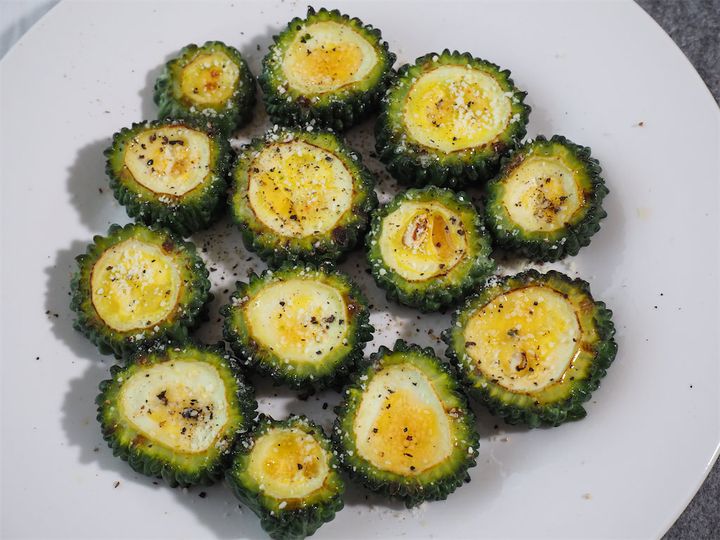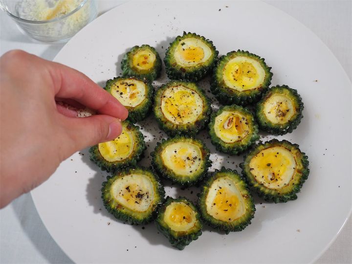 油はひかなくてOK!動かさずに弱火でじっくりと焼き上げていきます。じっくり焼くことでゴーヤの甘味も引き立てられるそう!
