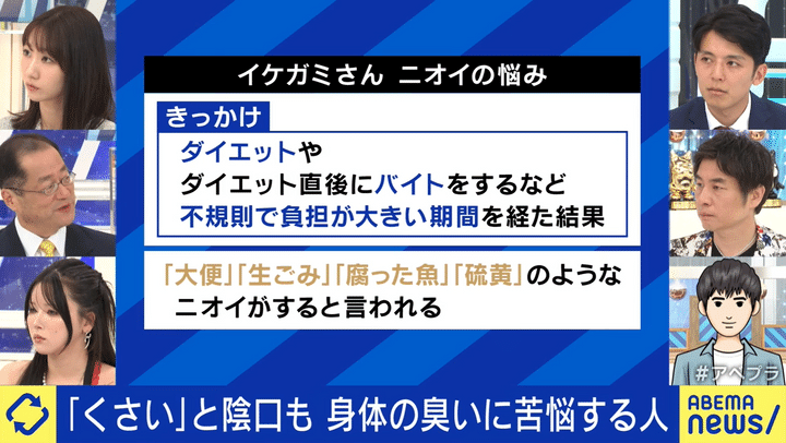『#アベプラ【平日よる9時〜生放送】』指摘は必要?身体のニオイに悩む人と議論 原因は皮膚ガス?自分の体臭どう知る?