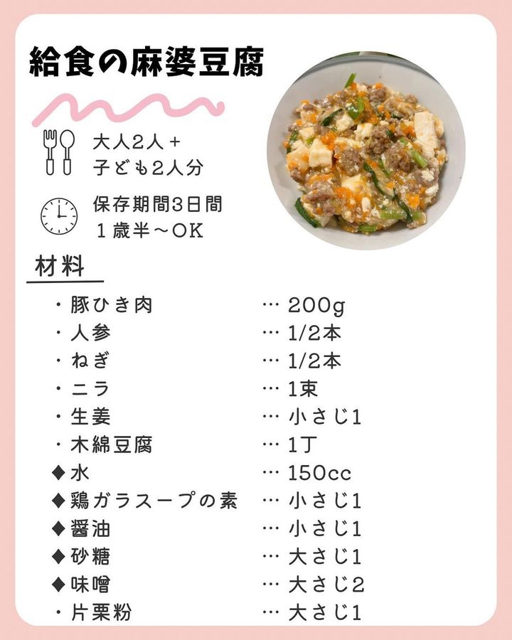 子どもに野菜を食べてほしいと思っても、なかなか食べてくれないといった経験がある人は多いのではないでしょうか。野菜が入っていても子どもたちが食べてくれる料理といえば、カレーやチャーハンだったりしますが、じつは……、麻婆豆腐もそのひとつなんです。今回は、ベビーカレンダー公式インフルエンサー「ベビカレメイト」であり、保育園の栄養士として日々子どもたちの献立を考えている「さしみ」さん考案の麻婆豆腐レシピをご紹介します!