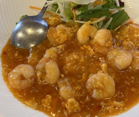 連日の暑さで食欲がなく、行く前は「中華を食べられるかしら」と不安でしたが、鮭の前菜の程よい酸味に食欲が刺激され、続く肉と野菜の炒めもの、春巻き、エビチリなど全て平げました。体が元気になっていくのが実感できました。