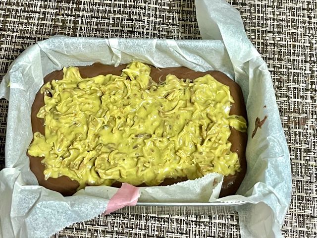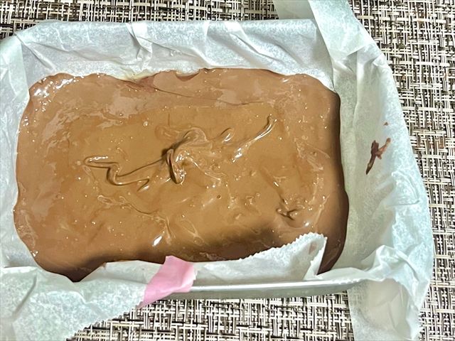 ⑤②をチョコの上に敷き詰め、再びチョコレートを流しいれる。