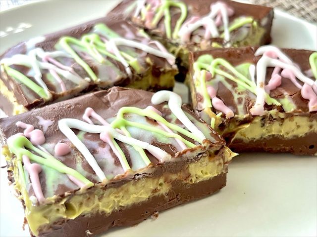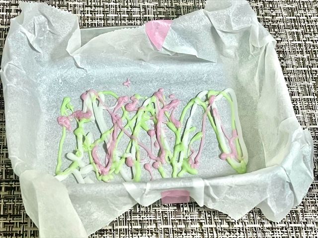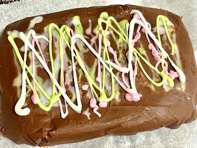 ⑦冷蔵庫で冷やし、チョコレートがかたまったら、お好みで柄を追加し完成!