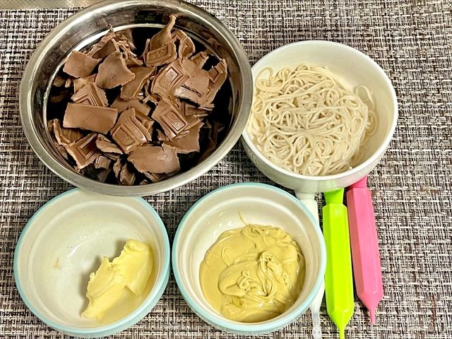 ④チョコレートを溶かし、なめらかな液状になったら、③に流し入れる。