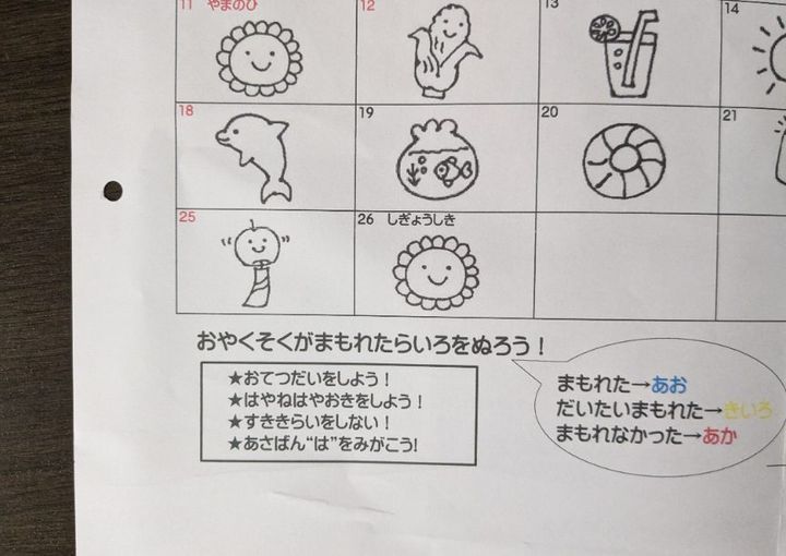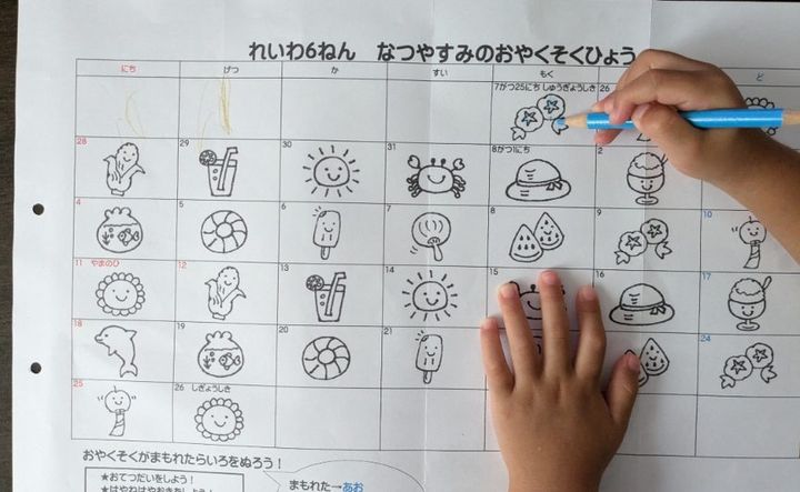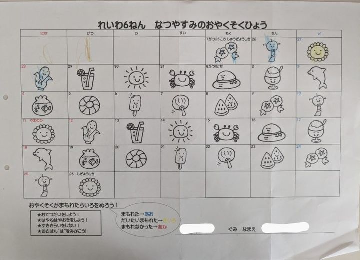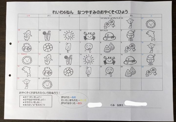 毎日記載しなければならない『なつやすみのおやくそくひょう』!