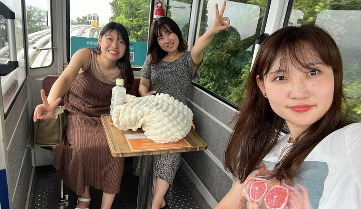 スカイカプセルは個室タイプのモノレールで、グループ単位で乗ることができます!