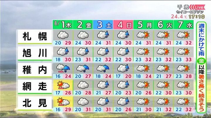 【ことしの7月、去年とどっちが暑い?】北海道の週間天気予報 8月1日(木)から/星井さき気象予報士執筆
