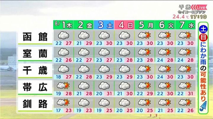 3. 【ことしの7月、去年とどっちが暑い?】北海道の週間天気予報 8月1日(木)から/星井さき気象予報士執筆