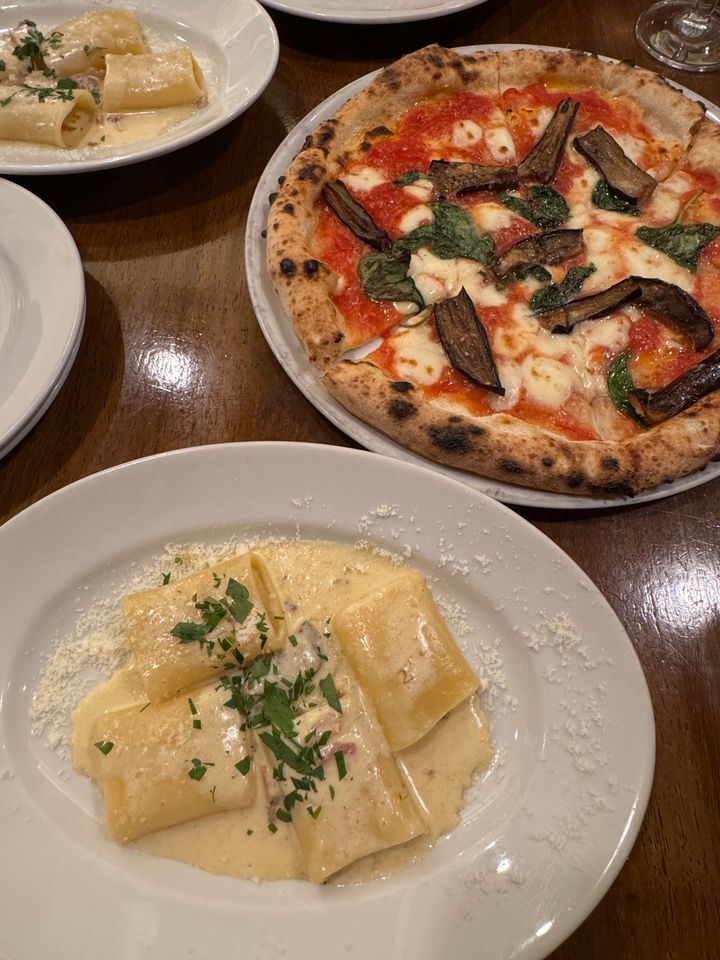 パッケリというパスタは取り分けてくださったのでこれがシェア後の量です!笑(食いしん坊なので、初めはあれ、少ないかも…とか思ってしまったけどこう見えて意外とボリューミー💫)