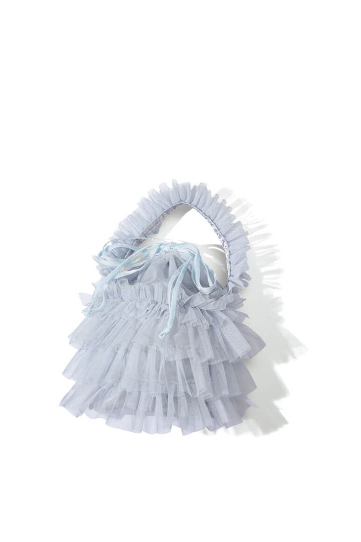 ハンドルも含め、表面がすべてチュールで覆われたふわふわフォルム。浴衣とのテイストMIXでもおしゃれ度が高まります。
