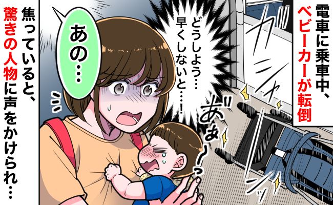 3. 「どうしよう…!」車内でベビーカーが転倒…声をかけてくれた人物に驚き!