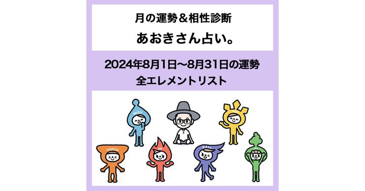 【2024年8月の運勢】“運気のピーク到来”エレメントを発表!|あおきさん占い。