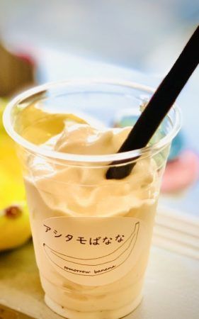2年近く前にオープンしたこちらのお店の名前は「アシタモばなな」。可愛らしいお店のロゴは、バナナが大好きなオーナーさんがマウスで描いたものだそうです。バナナジュースの専門店だけあって、お金を置くカルトンもバナナ!