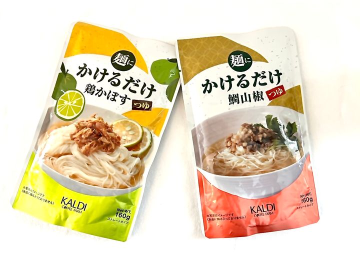 暑い日はキッチンに立つ時間を減らしたいもの。そんな時にはカルディの「麺にかけるだけシリーズ」を常備しておくと役立ちますよ。「鶏かぼすつゆ」は人気のためか現在オンラインでも在庫がないそう。店舗で見つけたら即買い決定です!