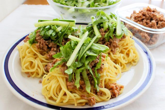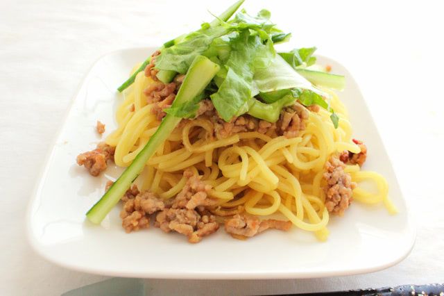 『きょうの料理』特別編『タサン志麻の小さな台所』で紹介されていた、「ジャージャー麺」がこちらです。一般的な「ジャージャー麺」は、茹でた中華麺の上にとろっとした甘辛い肉みそときゅうりが乗っているものが多いと思います。志麻さん流のものは、比較的ドライな感じに仕上がりました。
