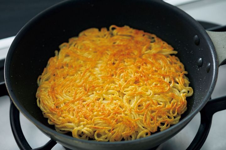3. 焼きそば麺が余ったら試してみて!チーズ風味のカリカリ『焼きそばガレット』レシピ