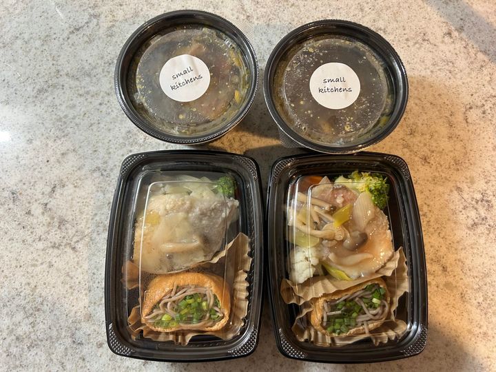 ※冒頭の写真の献立は、「赤魚の揚げ出し、そば稲荷、鶏と根菜のポトフ」でした。そば稲荷なんて家じゃ作らない!こういう変わったメニューも楽しみの一つです