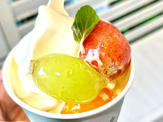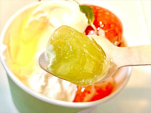 フルーツは季節によって変わるそうですが、筆者が訪れたときはマスカット、オレンジ、イチゴの3種類でした。