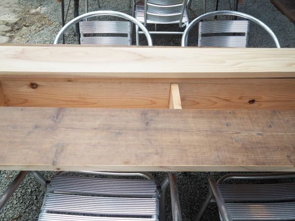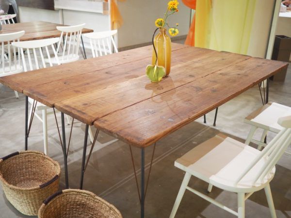 こちらのテーブルは、洋蘭の棚木の台を再利用したものなのだとか。このようにHANA no GAKKOではアップサイクルの取り組みが数多く行われています。