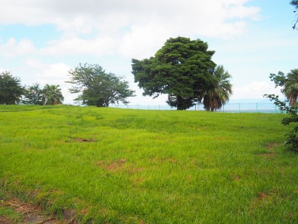 こちらは、建物前の広場です。今後こちらも公園として整備していきたいとのこと・・・。 まだ何もない状態だったのですが、グリーンの大地に青い空青い海が映えて、この景色を見ているだけでもワクワク楽しい気分になりました。