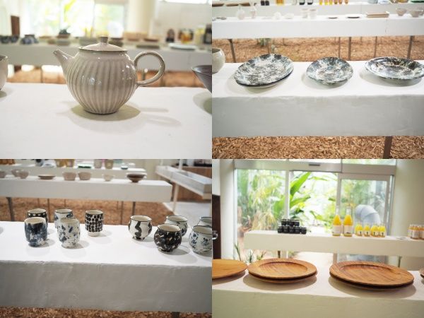 お菓子、調味料、世界にひとつの器などをじっくりと眺められ、生産者のストーリーに想いを馳せるのも素敵な時間です。 器も熊本の作家さんのものを取り扱うようにしているそうです。
