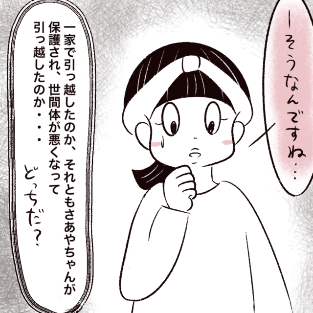 しかし、管理人さんは「私がいない日曜に引っ越しされてるから詳しくは分からないんだよ」と、さあやちゃんが家族と一緒なのかはわからないと言いました。