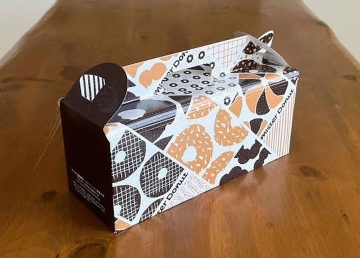 海苔子さんが「高級バッグよりも幸せを感じる」という、ミスタードーナツの箱。特に写真のような大きな箱を持っていると、たくさんのドーナツが入っているワクワク感が伝わりますよね。