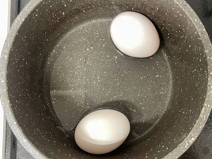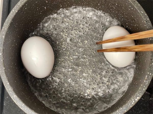 1. 鍋に水1cm分と卵を入れて沸騰させます。