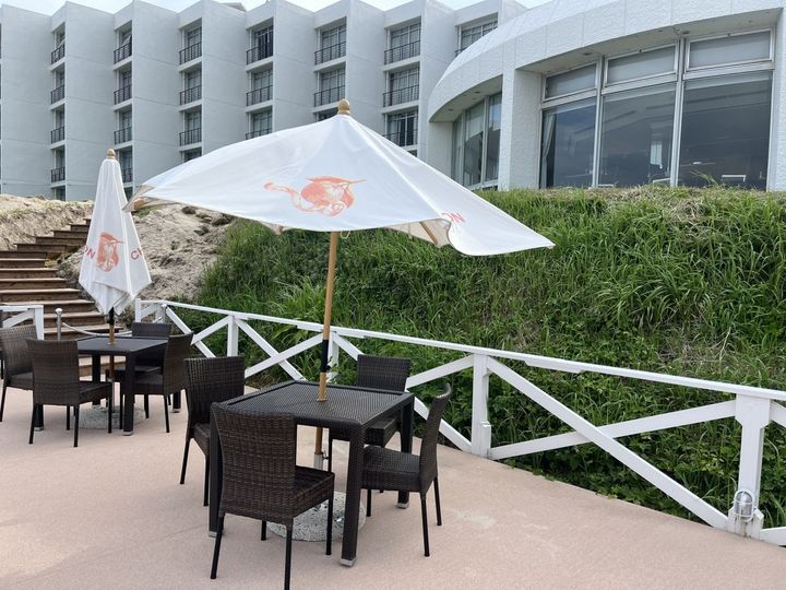 この夏のとっておきは、夕暮れ時に訪れる絶景を解放感あるデッキでアペリティフと一緒に楽しむ「サンデッキcafe」。デッキにはパラソル付きの席が設置され、潮風を浴びながらのんびりとした夏の夕暮れを過ごすとこができます。