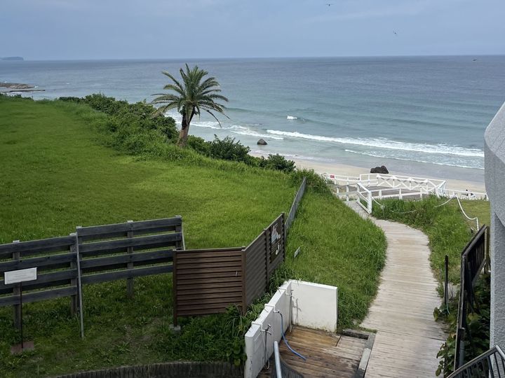 白浜中央海水浴場が目前に広がる「下田プリンスホテル」。ホテルのロビーを抜けた先から、そのまま海へ出ることができます。ホテル宿泊客の利用が大半なので、まるでプライベートビーチのように落ち着いた空間です。心地よい潮風や潮騒を感じながらゆったりとした時間を過ごせます。