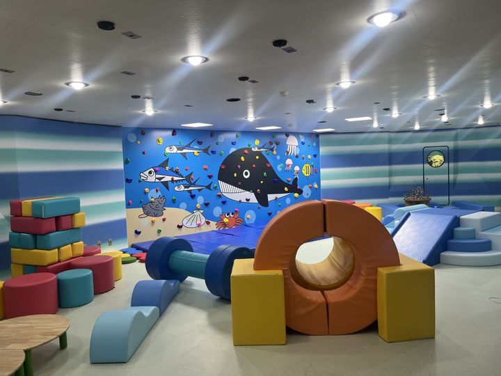 また、ホテル1階にはキッズルーム「サブマリン・キッズアドベンチャー」が新設されました。ボルダリングや大きなウレタン製遊具が揃っているので、雨で退屈になった子どもも、思いっきり身体を動かせます。